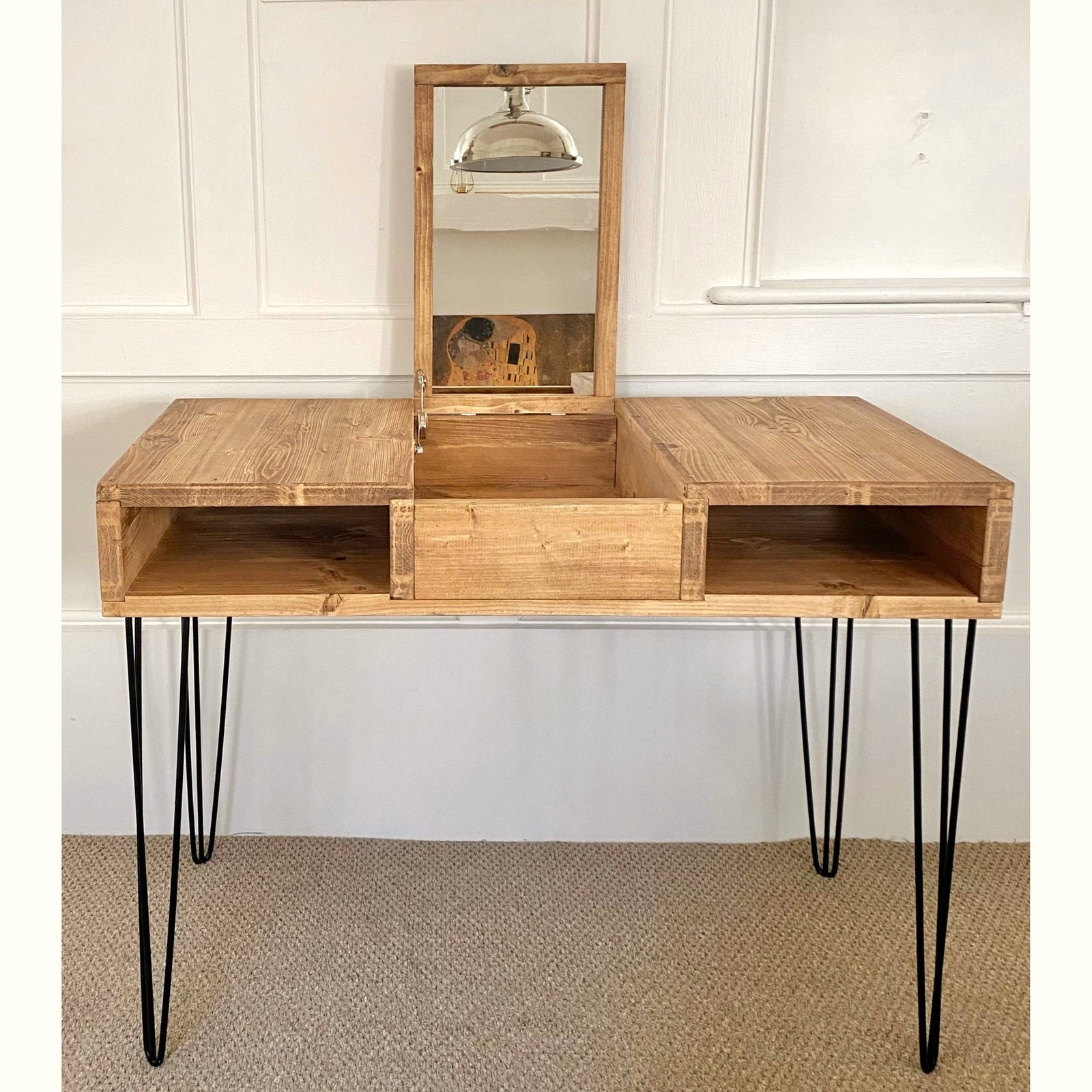 It’s a beautiful table and looks wonderful in our study. A couple of minor gripes, the holes did not line up for the screws for the trapezium legs so that was a bit of a challenge armed with just a screwdriver. Also, courier delivered the table top and legs separately so be aware that this table is sent in two pieces. Other than that very happy!